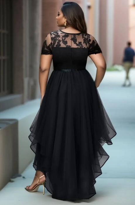 Irmgard Elegant mullet dress for wedding guests in black with lace