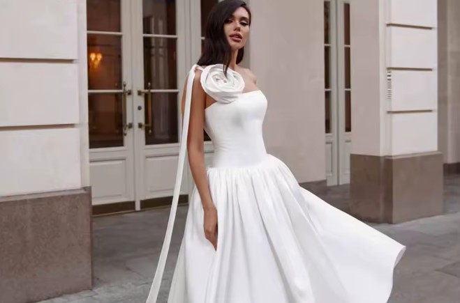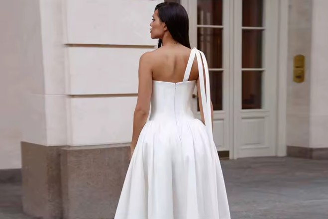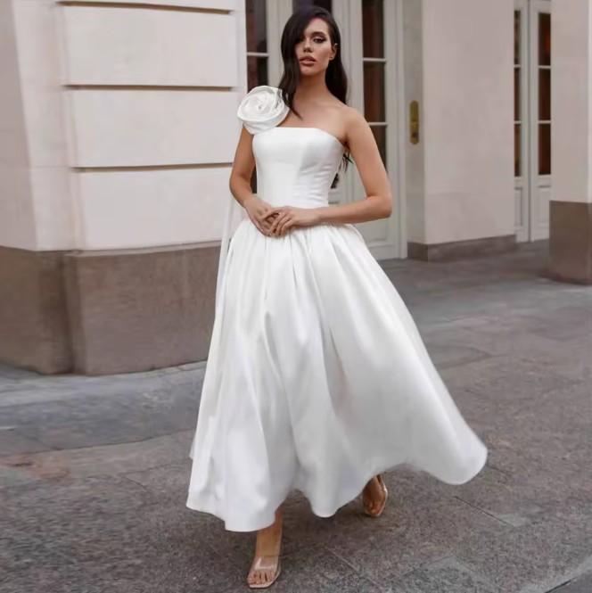 One Shoulder Brautkleid Irmtraud Knöchellang