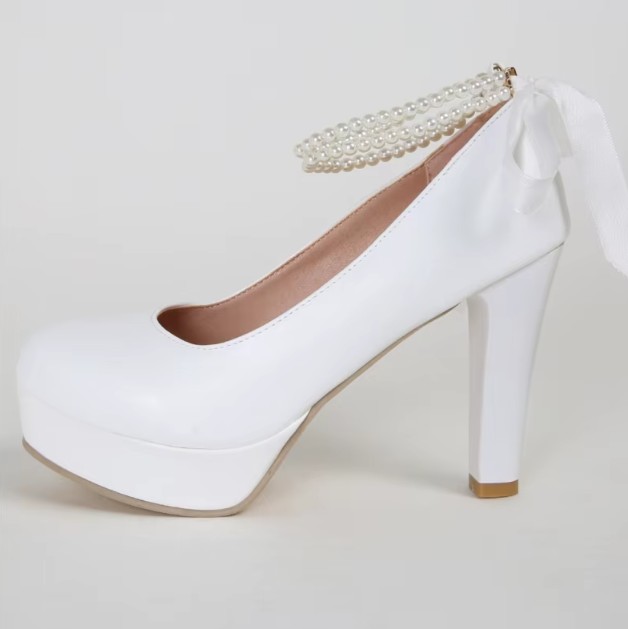 Bridal platform pumps, wedding shoes in white with pearl straps