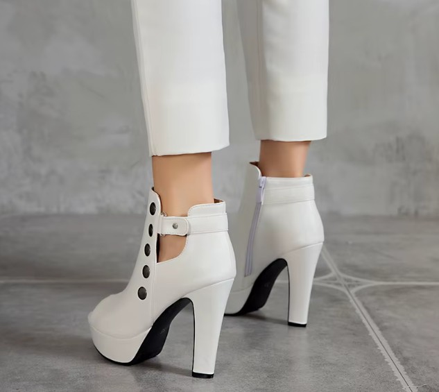 White Platform Peep Toe High Heel Ankle Boots for the Bride