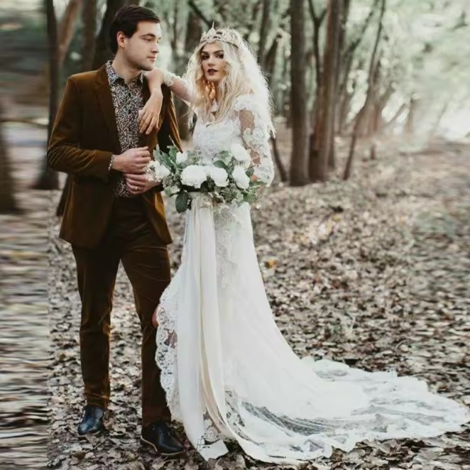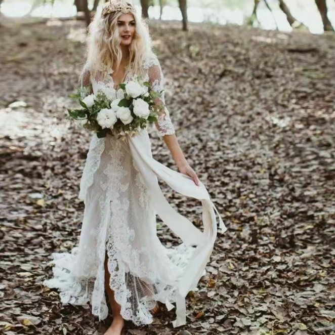 Boho Stil Brautkleid Iseabail mit Spitzen Applikationen