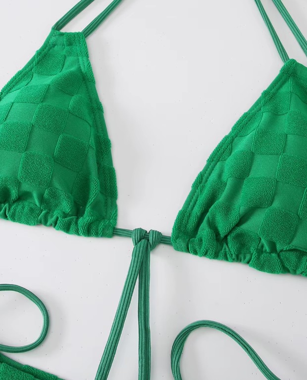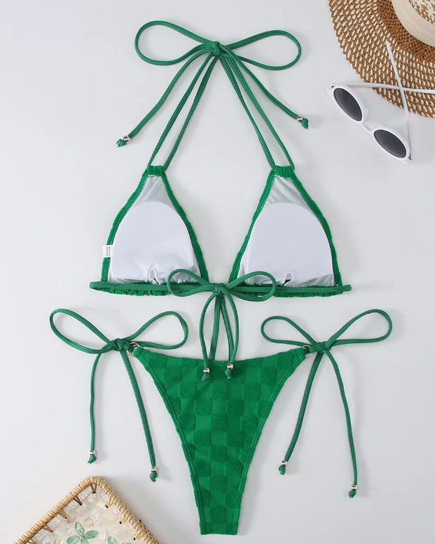 Halterneck Bikini Sibel in Grün mit Karomuster