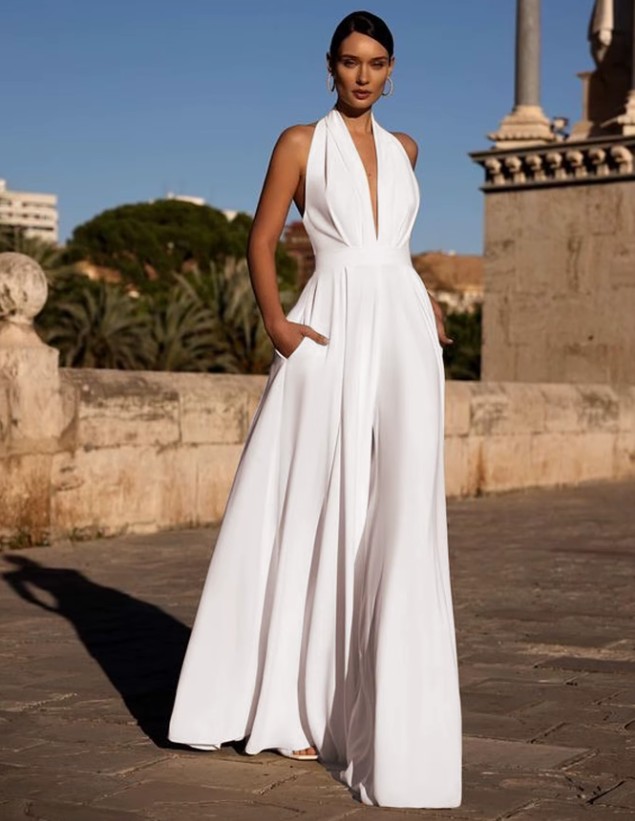 Halterneck bridal jumpsuit Iva for the registry office