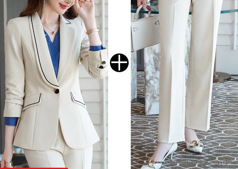 High-end white trouser suit with appliqués. Elegant.