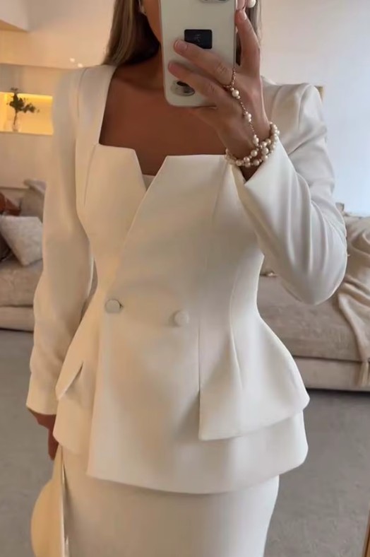 I-line women’s suit in white, civil ceremony fashion