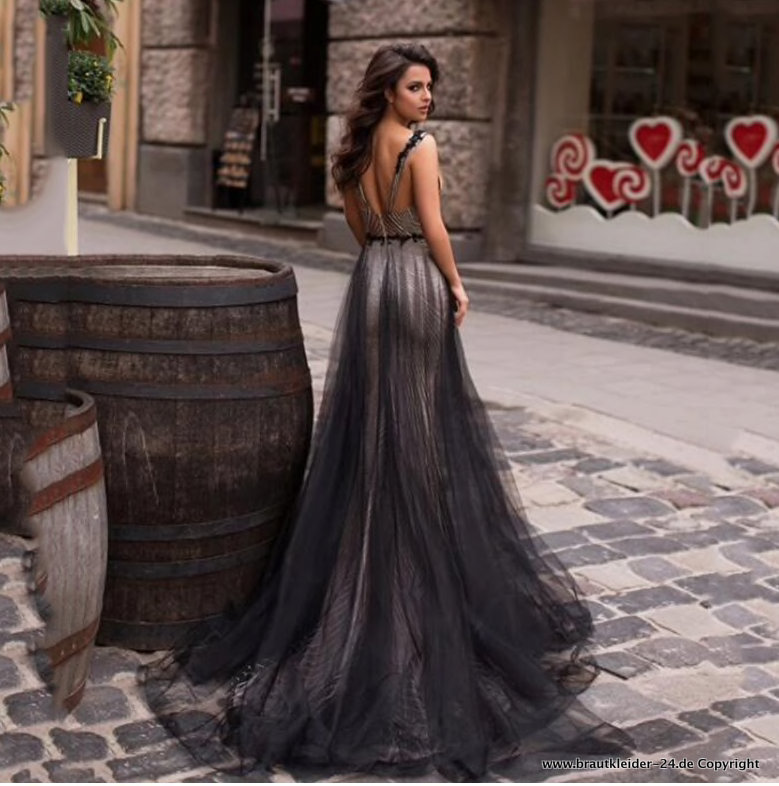 Meerjungfrau Tüll Brautkleid Hochzeitskleid in Schwarz Silber