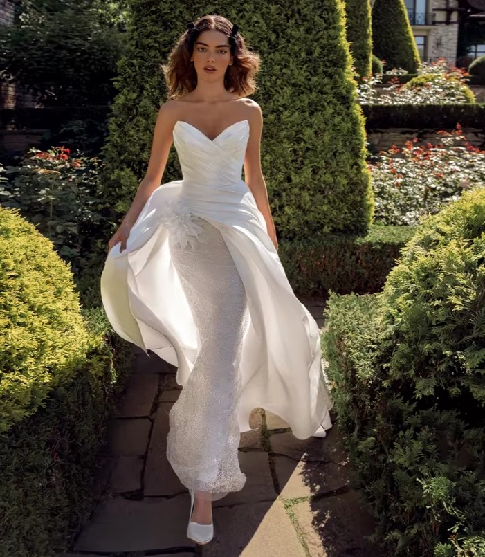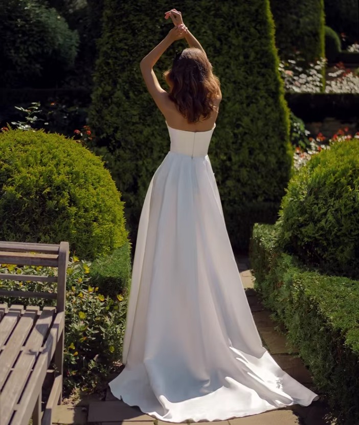 Schulterfreies Brautkleid Ivy mit Schleppe und 3D Blume