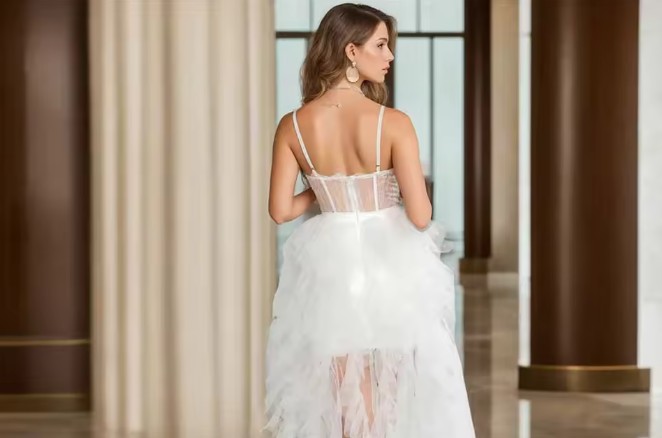 Tüll Vokuhila Brautkleid mit Lingerie Oberteil