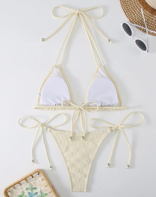 Halterneck Bikini Sibel in Creme mit Karomuster