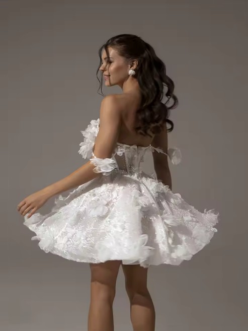 Süßes Schulterfreies Mini Brautkleid mit Blumen