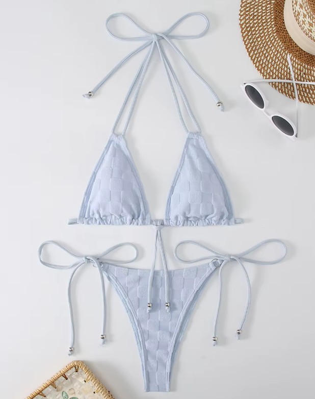 Halterneck bikini Sibel in baby blue with check pattern