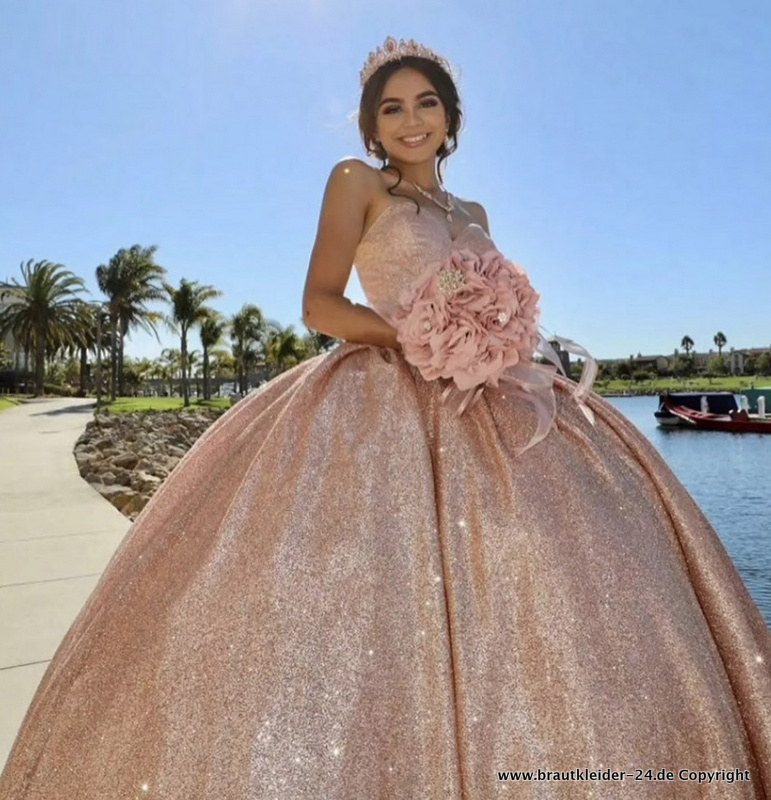 Rose Gold Quinceanera Kleid Glitzer Brautkleid Schulterfrei