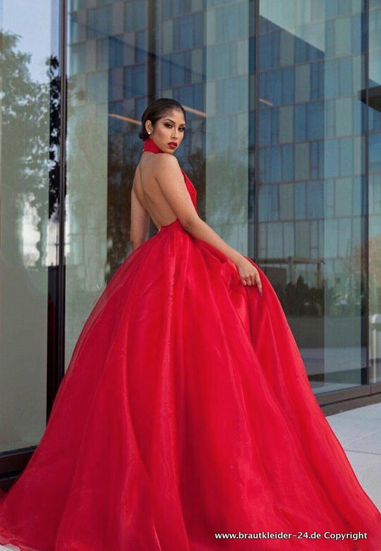 A Linie Neckholder Träger Brautkleid Hochzeitskleid in Rot