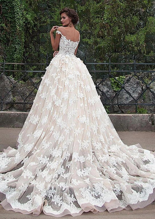 Ball Linie Brautkleid Bonny mit Spitze Schulterfrei in Elfenbein