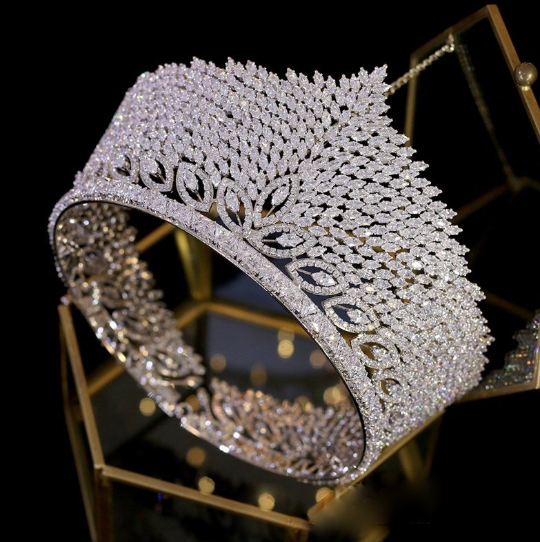 Luxus Zirkonia Braut Krone Blossom in Silber