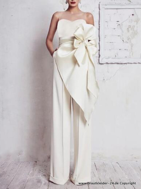 Schulterfreies Jumpsuit Overall für den Standesamt Festlich in Weiß