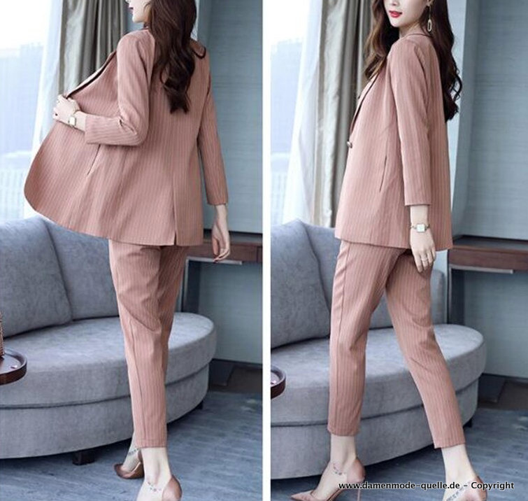 Damen Nadelstreifen Hosenanzug in Rosa mit 3/4 Hose