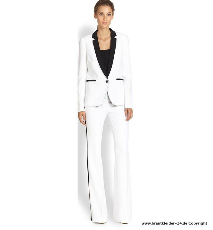 Hosenanzug für die Braut in Weiß mit Applikationen in Schwarz bis 4XL