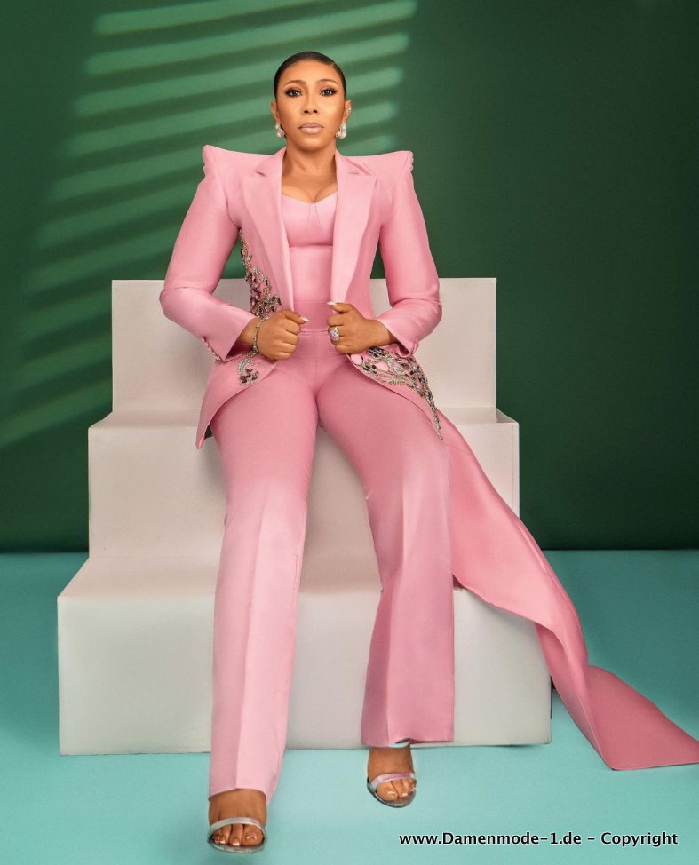 Eleganter Hosenanzug in Rosa Asymmetrisch mit Stickereien