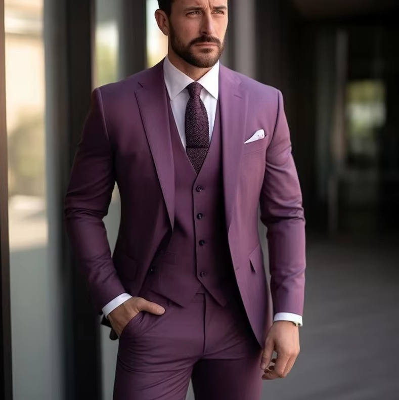 Purple wedding suit for the groom, three-piece with vest