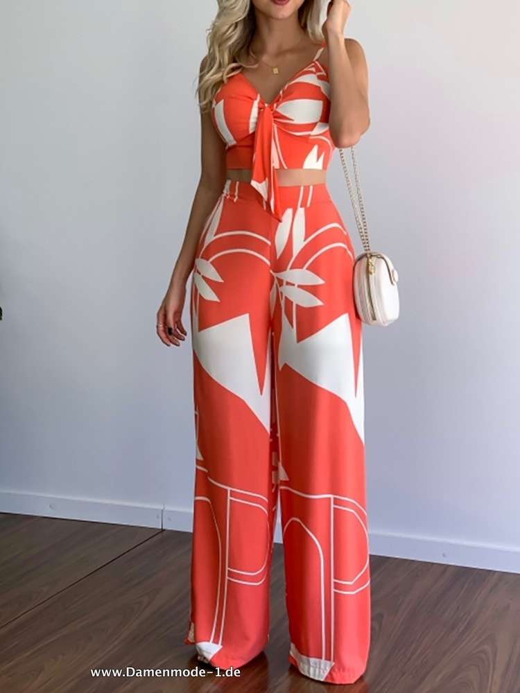 Sommer Set Outfit für den Urlaub und Freizeit in Koralle mit Motiv