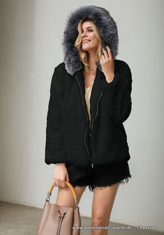 Kunstpelz Plüsch Damen Jacke für den Winter in Schwarz