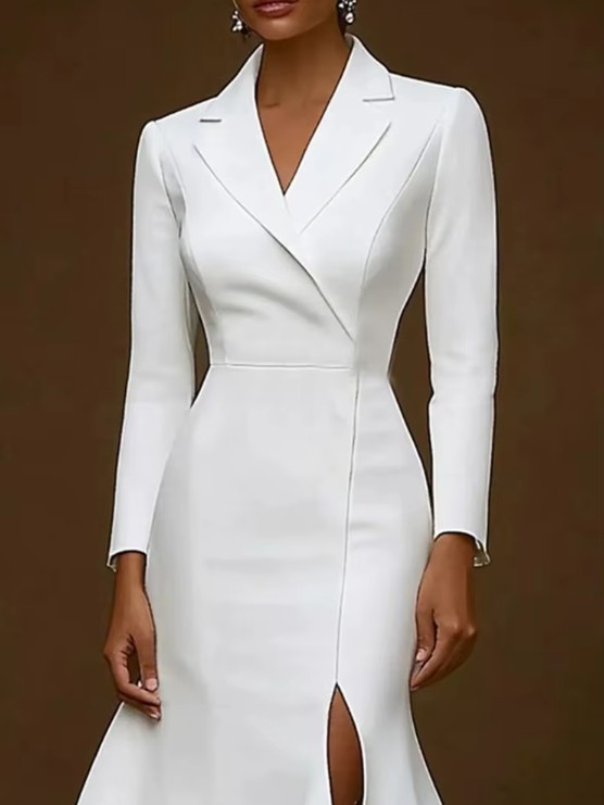 Long-sleeved mermaid civil wedding dress Jana calf-length