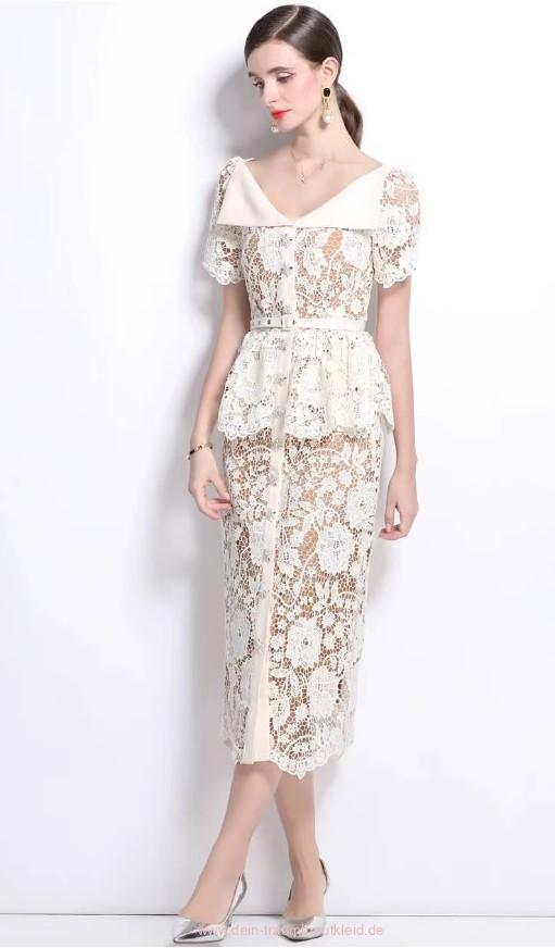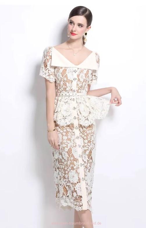 I Linie Kurzarm Standesamt Brautkleid Gunda Wadenlang aus Spitze Elfenbein