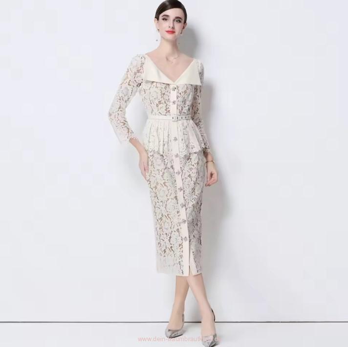 I Linie Langarm Standesamt Brautkleid Gunda Wadenlang aus Spitze Elfenbein