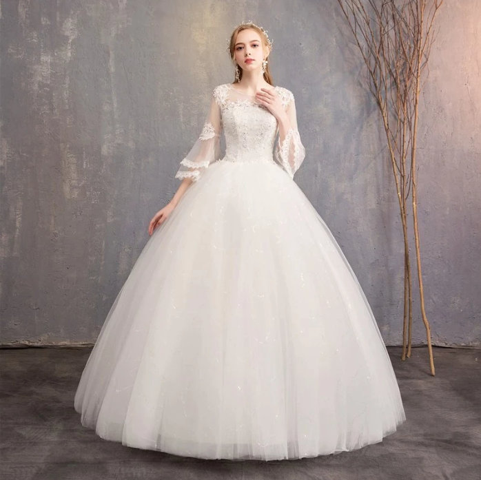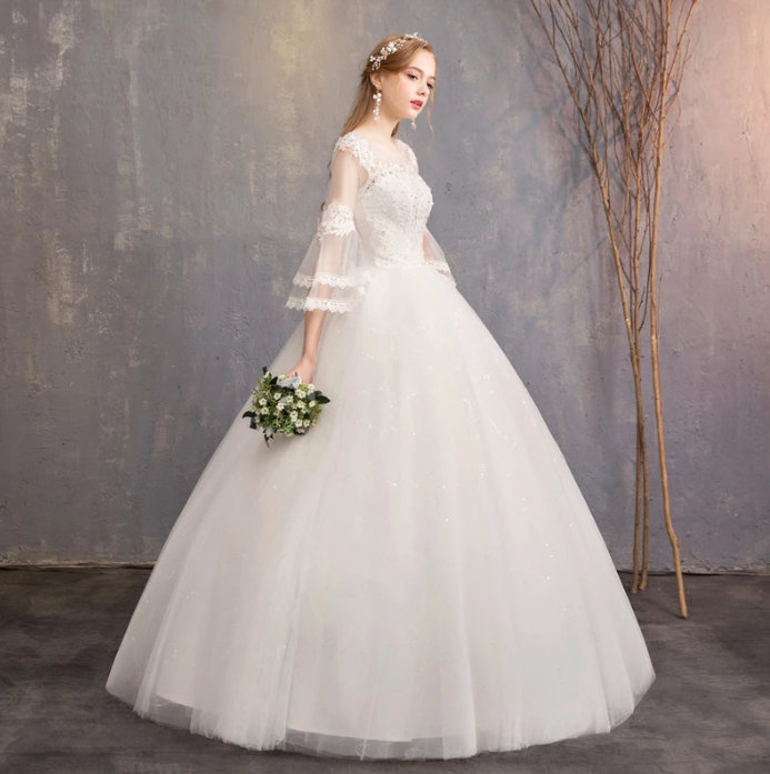 Classic ball gown Ariel, floor-length with batwing sleeves