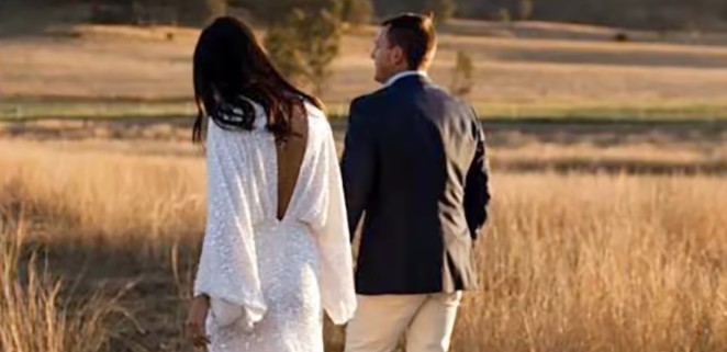 Langarm I Linie Glitzer Brautkleid Iseabail mit Sexy V Ausschnitt