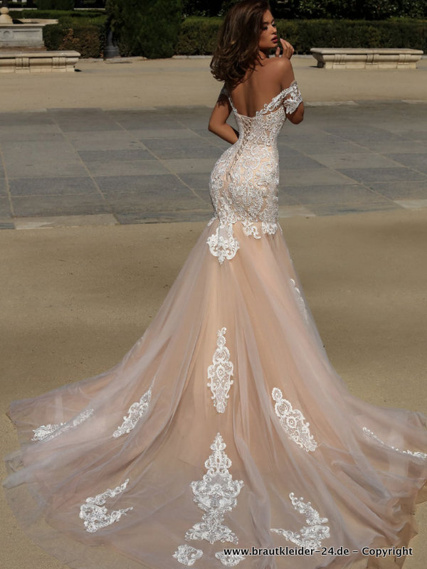 Elefnbein Meerjungfrau Brautkleid Schulterfrei mit Spitze