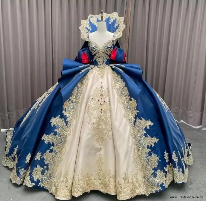 Königin Brautkleid in Blau – Champagne mit Spitze und Schleppe