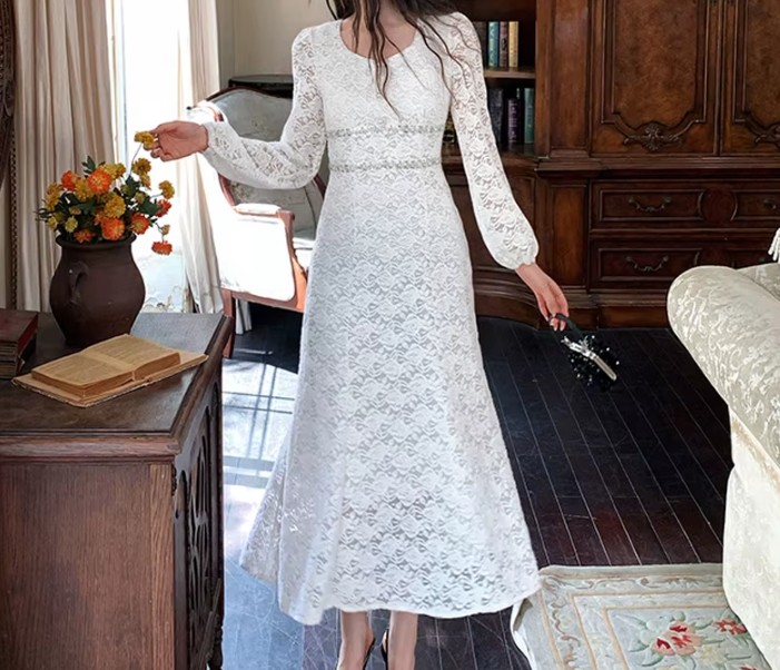 Langarm Empire Standesamtkleid Isis aus Spitze