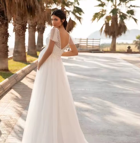 Empire maternity wedding dress Itziar with flutter sleeves