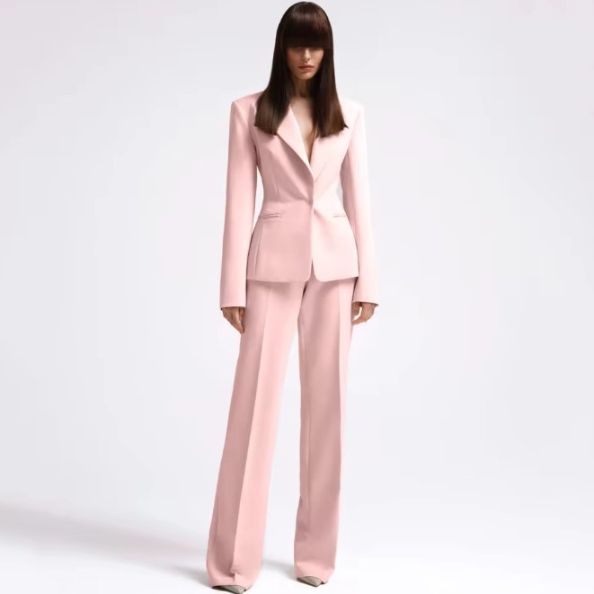 Elegant single-breasted pantsuit for the bride Ivette in pink