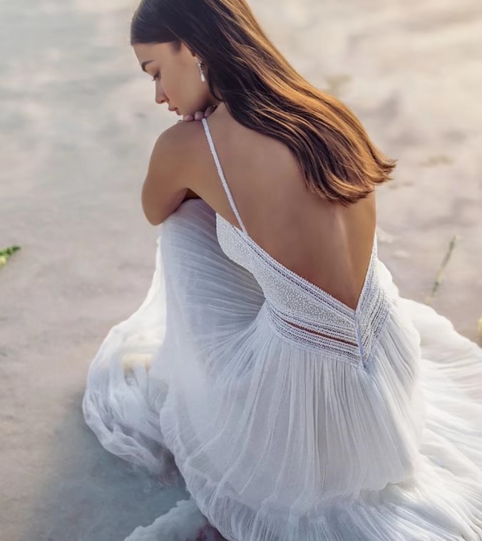 A Linie Boho Brautkleid Jana aus Spitze mit Rücken Ausschnitt