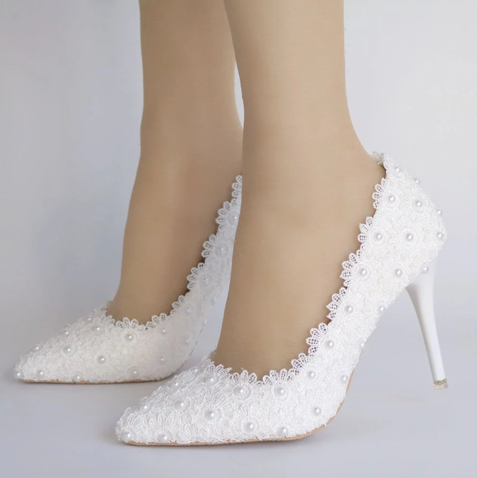 Crystal Queen Pumps Bridal Shoes Wedding Shoes White with Pearls