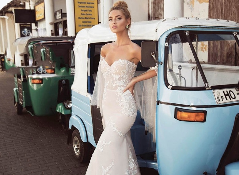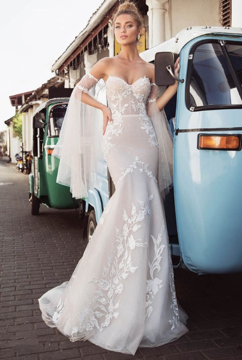 Off-the-shoulder mermaid wedding dress Janet with lace and detachable sleeves