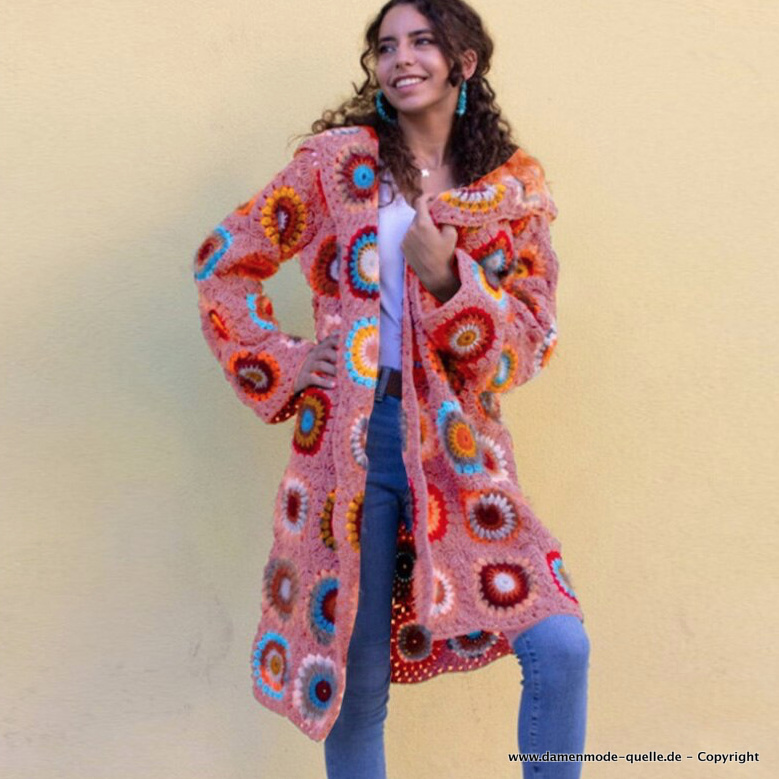 Vintage Style Lange Strickjacke Cardigan in Rosa
