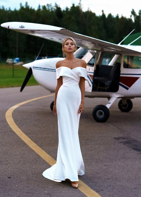 I-line wedding dress Baila, off-the-shoulder, detachable train