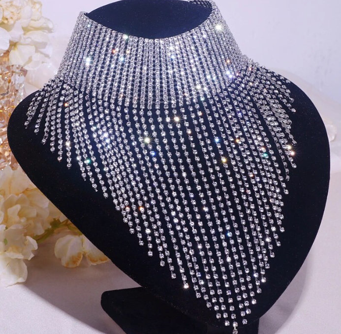 Full rhinestone bridal necklace in silver