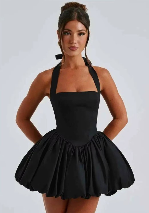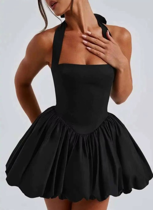 Neckholder Träger Mini Cocktailkleid in Schwarz
