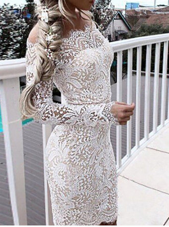 Off-the-shoulder bodycon short dress made of lace