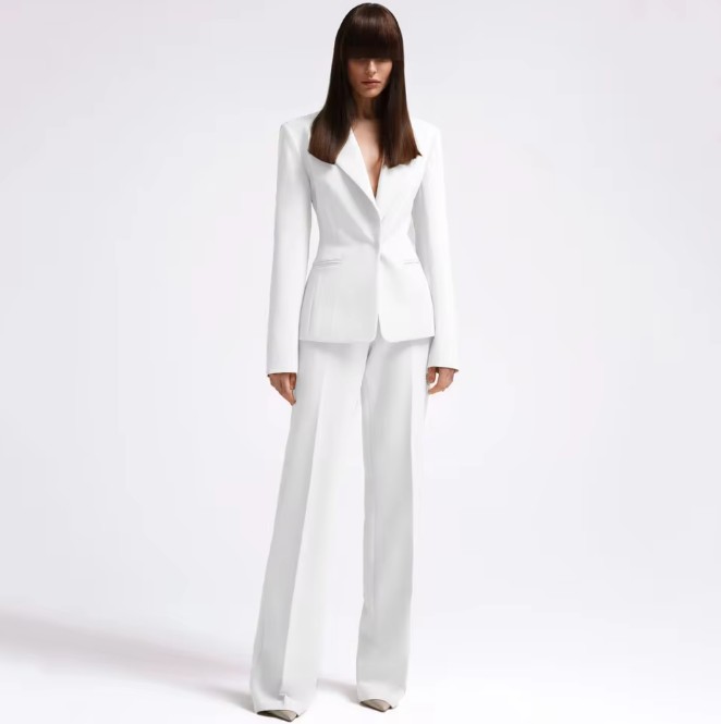 Eleganter Einreiher Hosenanzug für die Braut Ivette in Weiß