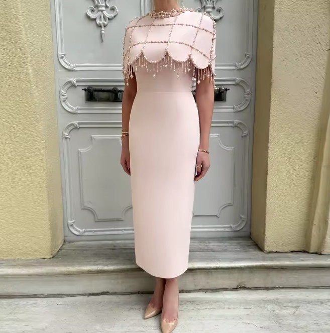 I Linie Brautkleid Isis Knöchellang in Zartrosa mit Perlen Applikationen