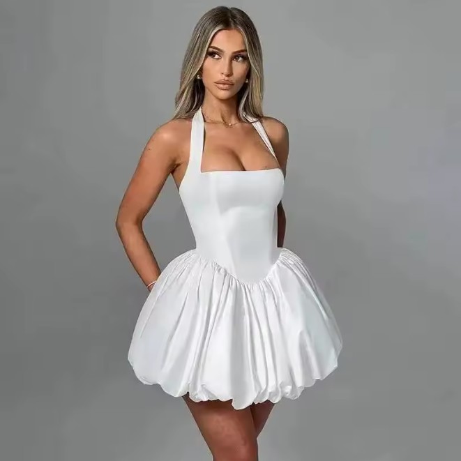 Neckholder Träger Mini Cocktailkleid in Weiß