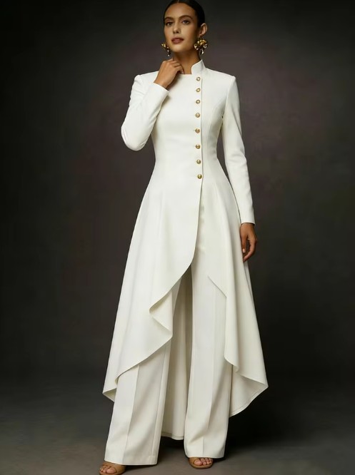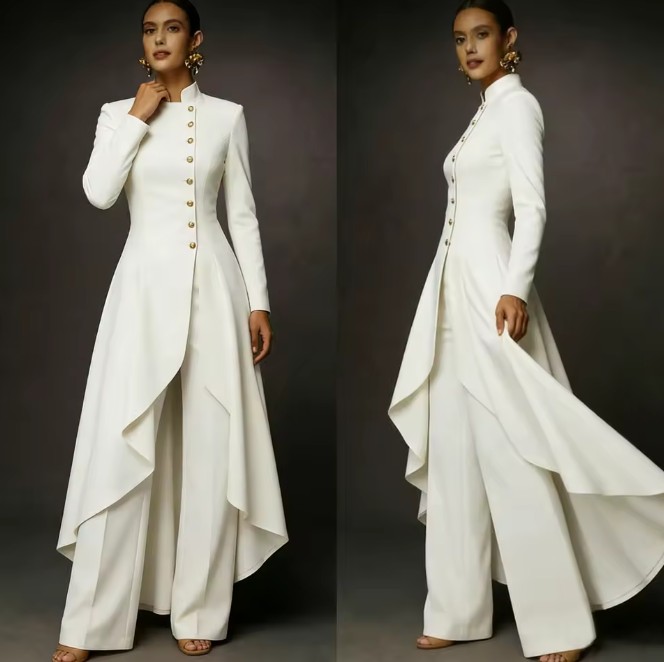 Tuxedo style bridal pantsuit Janka with stand-up collar