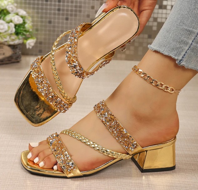 Glitter Rhinestone Summer Bridal Shoes Ineke Gold