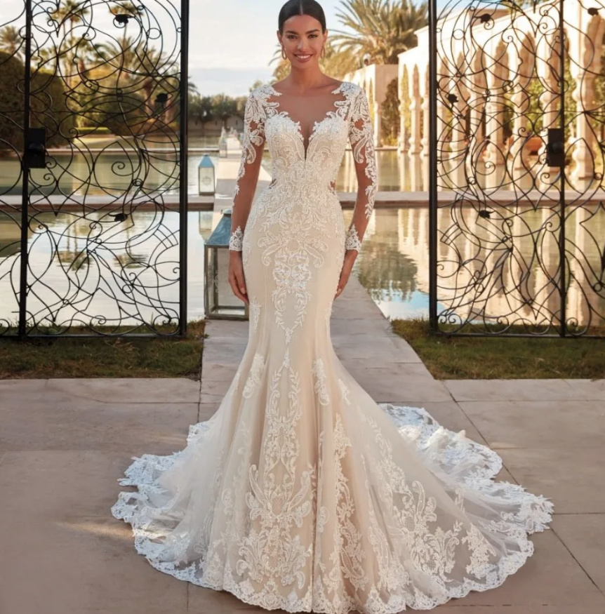 Langarm Luxus Meerjungfrau Brautkleid Annabell mit Schleppe und Spitze